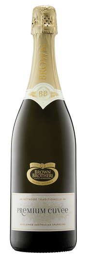 Made in the Traditional Method by winemaker Cate Looney, the Brown Brothers Premium Cuvée NV is a beautiful blend of Pinot Noir (56%), Chardonnay (29%) & Pinot Meunier (15%); a refreshing and lively sparkling wine made from handpicked and gently whole bunch pressed fruit from our cool-climate vineyards in the King Valley and Tumbarumba.