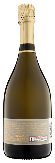 This Blanc de Blancs uses 100% Chardonnay grapes handpicked from the cool climate Tasmanian vineyards. The colour is a bright hue with a fine persistent bead. The nose is lifted with sour dough bread and citrus overtones. It also shows an elegant yeasty flavour from the time on lees. These characters follow through to the palate which offers a creamy mouth feel and crisp, fresh finish.